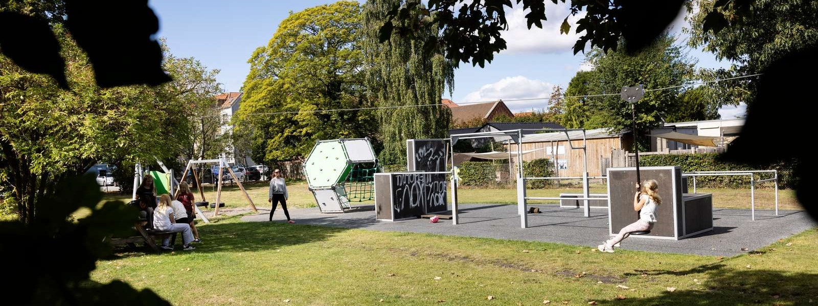 Ungelegepladsen ved Kastrupkrogen har både svævebane, gynge, klatrekube og parkour. Beregnet til større børn og teenagere.