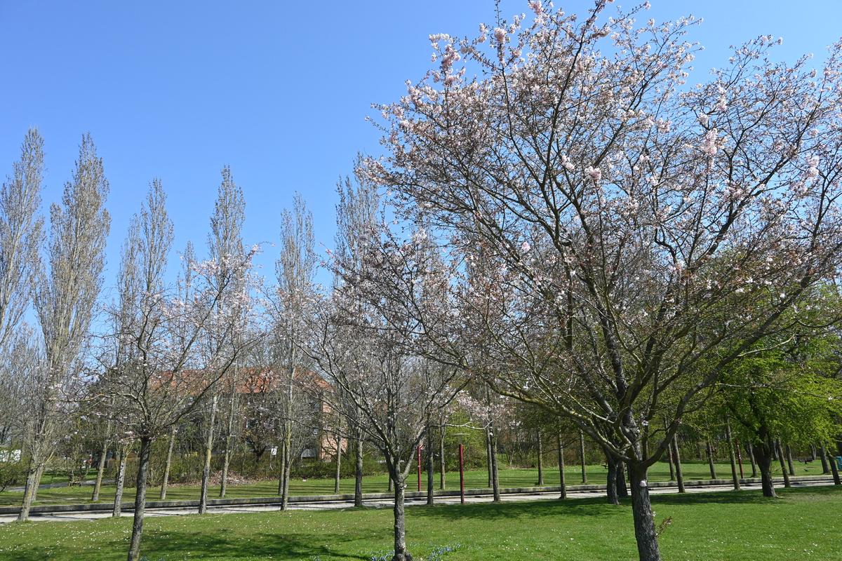 I den vestlige ende af parken, nær vandtårnet, finder du motionsredskaber, legeplads og en lille labyrint. Bevæger du dig længere mod øst, kommer du forbi frugtlunden og nyttehaverne.