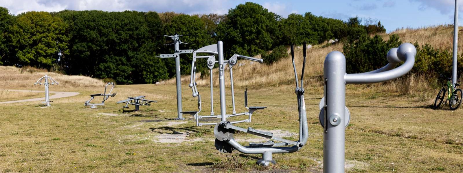 Ved strandparken har vi opstillet motionsredskaber, så du kan træne i de smukke omgivelser ved vandet fx i forbindelse med en tur i havet.